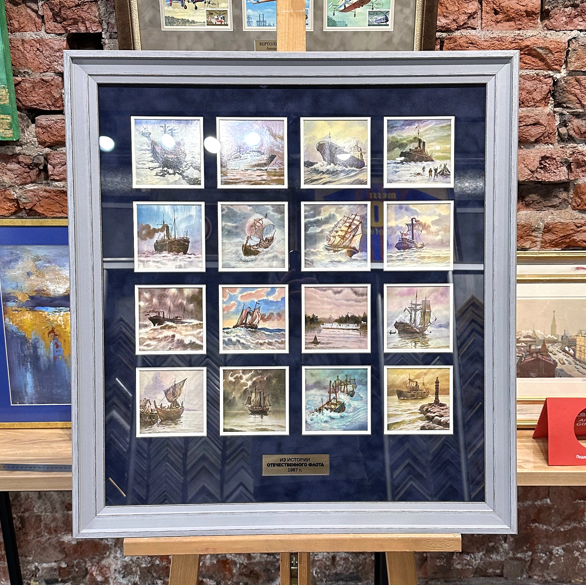 Набор открыток 1987 года – советский комплект настоящих цветных иллюстраций. Это отражение богатой летописи отечественного флота. В набор почтовых карточек (открытых писем) вошли изображения судов от плоскодонных парусно-гребных стругов VI в. до танкеров и атомных ледоколов 70-80 гг. прошлого столетия. В каждой зарисовке точно передается истинная величественность кораблей, способных устоять и в битве с врагами, и среди разбушевавшейся стихии. Реалистично изображены мощь, технические особенности и изящество внешнего вида.