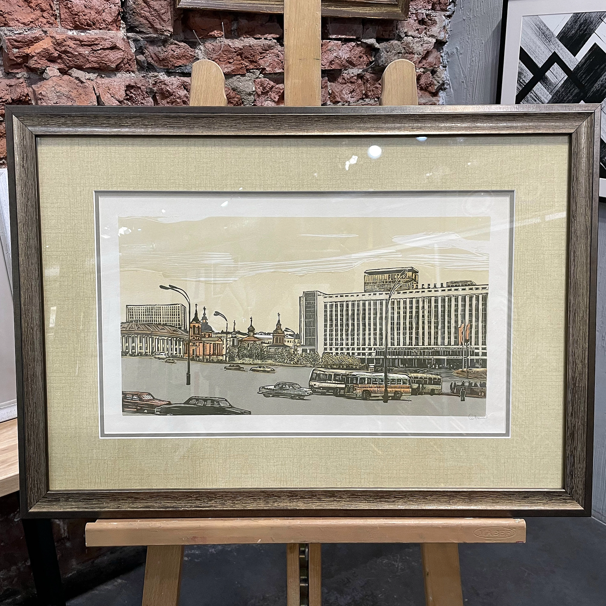 "Столица" - винтажная оригинальная линогравюра